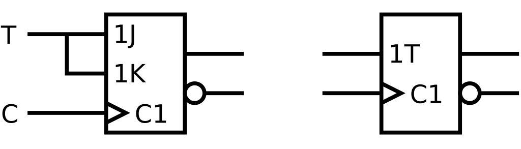 Keywords: T flip-flop from JK.svg en T flip-flop from JK flip-flop positive edge-triggered es Flip-flop T a partir de un flip-flop JK sincronizado por flanco ascendente own Dizquierdol Made with Dia v0 97 1 Cc-zero Flip-flops