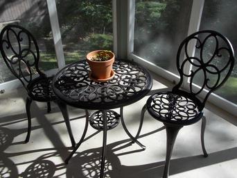 Keywords: table chair interior light porch evening shadows