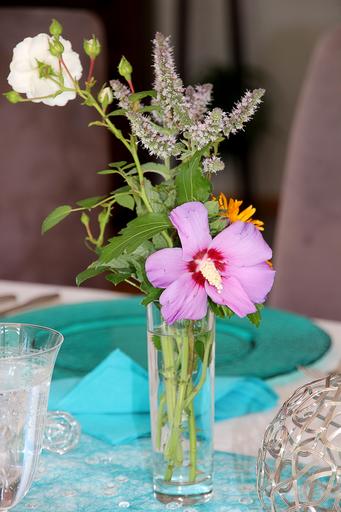 Keywords: table decorations flower vase decoration blossom bloom still life deco floral restaurant decorative celebration holiday table