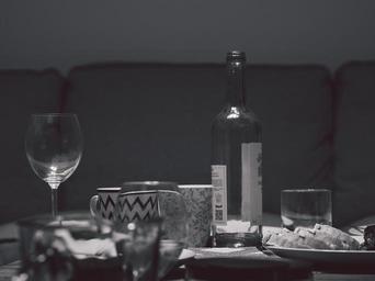 Keywords: table party dishes bottle glass wine food celebration alcohol drink