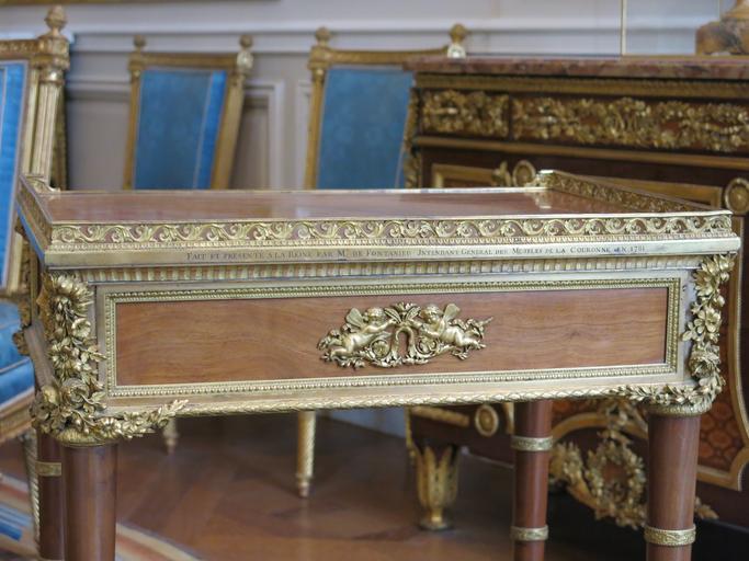 Keywords: Table pour le cabinet intérieur de Marie-Antoinette (Louvre) inscription.jpg en Inscription on the table for the interior cabinet of Marie-Antoinette Marie-Antoinette room in Louvre museum Paris France fr Inscription sur la table pour le cabinet intérieur de Marie-Antoinette Salle Marie-Antoinette au musée du Louvre Le texte est Fait et présenté à la Reine par Mr de Fontanieu Intendant général des meubles de la Couronne en 1781 sf 2016-02-01 Tangopaso thumb left Overview OA 5233 Decorative arts in the Louvre - Room 65 Louis XVI style furniture 1781 productions Tables in France |