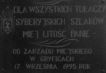 | Keywords: Tablica pamięci Sybirakom w Gryficach.JPG Tablica pamięci Sybirakom w Gryficach Polska The board of memory Deported to Siberia in Gryfice Poland Roman Andrzej Kargul 2011-04-13 Roman Andrzej Kargul Kargul1965 Cc-zero Monuments and memorials in Gryfice Deportations to Siberia |