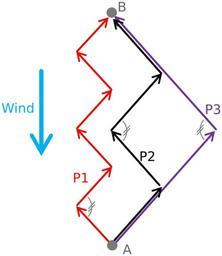 | Keywords: Tacking Intervals.svg en Schematic showing different paths of a vessel beating against the wind A vessel sailing against the wind from A to B can tack using different sized intervals taking e g the paths P1 P2 or P3 while travelling the same overall distance In a narrow channel path P1 can be necessary while in open water P3 may be preferable because it requires fewer turns In all cases the vessel will sail as close to the wind as possible Jibing_Intervals_2 jpg 2011-07-25 09 21 UTC Jibing_Intervals_2 jpg Lindert derivative work Gregors <span class signature-talk >talk</span> 09 22 25 July 2011 UTC Redraw of pixel jpg image as vector svg Gregors Jibing_Intervals_2 jpg in-image interferes with image reuse </nowiki> 2010-03-17T23 40 22Z Lindert 965x628 176877 Bytes <nowiki> own Lindert 2010-03-18 </nowiki> Uploaded with derivativeFX Sailing manoeuvres Sailing diagrams |