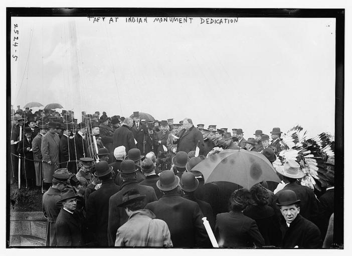 | Keywords: Taft at Indian Monument Dedication (LOC) (2722105887).jpg Bain News Service publisher Taft at Indian Monument Dedication between 1910 and 1915 1 negative glass ; 5 x 7 in or smaller Notes Title from unverified data provided by the Bain News Service on the negatives or caption cards Forms part of George Grantham Bain Collection Library of Congress Format Glass negatives Rights Info No known restrictions on publication Repository Library of Congress Prints and Photographs Division Washington D C 20540 USA http //hdl loc gov/loc pnp/pp print hdl loc gov/loc pnp/pp print General information about the Bain Collection is available at http //hdl loc gov/loc pnp/pp ggbain hdl loc gov/loc pnp/pp ggbain Persistent URL http //hdl loc gov/loc pnp/ggbain 11597 hdl loc gov/loc pnp/ggbain 11597 Call Number LC-B2- 2524-5 http //www flickr com/photos/8623220 N02/2722105887/ Taft at Indian Monument Dedication LOC Uploaded by LongLiveRock http //www flickr com/people/8623220 N02 The Library of Congress http //www loc gov/rr/print/195_copr html noknown PD-Bain LOC-image ggbain 11597 File Upload Bot Magnus Manske March 8 2010 Photographs of the Indigenous peoples of North America |