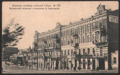 | Keywords: Taganrogsky prospect. Rostov-on-Don.jpg ru Таган огский п оспект в Ростове-на-Дону на до еволюционной отк ытке 1906 http //antikvariat-rostov ru/rostov_na_donu _taganrogskiy_prospekt html Фототипия Ше е абгольц и Ко осква PD-Rus-Empire Uploaded with UploadWizard Budenovsky avenue in Rostov-on-Don |