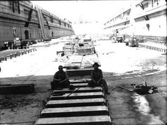 | Keywords: archives state records nsw staterecordsnsw newsouthwales blackandwhite captain cook captaincook ship people workers keel smoko monochrome outdoor black and white View of the interior of the CAPTAIN COOK Graving Dock showing workers resting on keel block Dated: c.1944 Digital ID: 9856_a017_A017000064 Rights: www.records.nsw.gov.au/about-us/rights-and-permissions We'd love to hear from you if you use our photos. Many other photos in our collection are available to view and browse on our website using Photo Investigator. View of the interior of the CAPTAIN COOK Graving Dock showing workers resting on keel block Dated: c.1944 Digital ID: 9856_a017_A017000064 Rights: www.records.nsw.gov.au/about-us/rights-and-permissions We'd love to hear from you if you use our photos. Many other photos in our collection are available to view and browse on our website using Photo Investigator. |