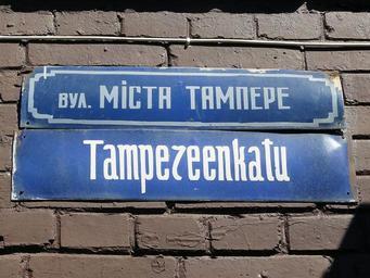 | Keywords: Tampere str sign.JPG  en Tampere street sign Kiev uk Покажчик на вулиці Ð¢Ð°Ð¼Ð¿ÐµÑ Ðµ Київ ru Указатель на улице Ð¢Ð°Ð¼Ð¿ÐµÑ Ðµ Киев own Skaerman 2011-04-19 Cc-zero Tampere Street Street signs in Ukraine Bilingual street signs Twin town signs Bilingual street signs in Ukraine |