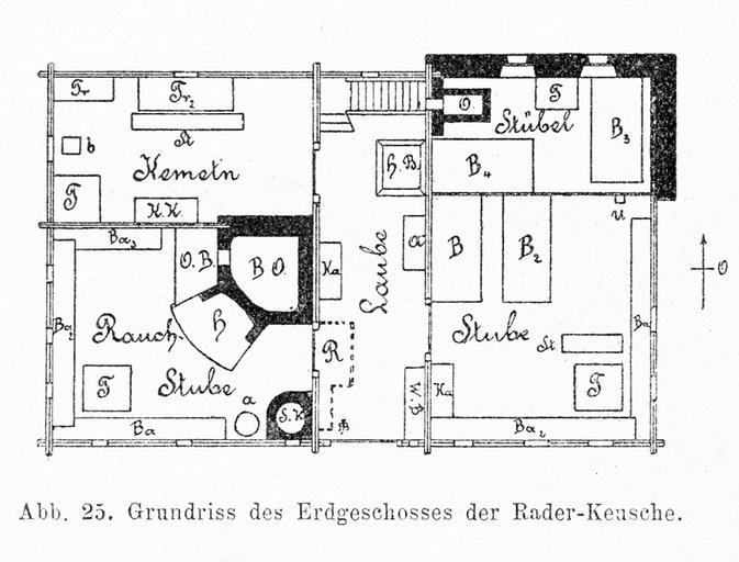 | Keywords: Tangern Dorfplatz 03 1902 b.jpg Plan des Erdgeschosses der Rader Keusche im Jahre 1902 in Tangern am Millstätter Berg Hochplateau über dem Millstättersee / Gemeinde Seeboden in Kärnten / Österreich / Europäische Union Diese Abbildung stammt aus dem Beitrag von J R Bünker in Ödenburg Das Bauernhaus am Millstätter See in Kärnten Wien 1902 Sonderdruck aus Band XXXII Der dritten Folge Band II der žMittheilungen der Anthropologischen Gesellschaft in Wien Seite 48 Dieses Haus im Jahre 2009 Grundriss des Holzhauses im Jahre 1900 gezeichnet von Johann Reinhard Bünker žLaube - Vorhaus; žH B - Hackblock; žA - Ã…lma Kasten mit Fächern; žKa - Kleiderkasten Kasten; žW B - Wasserbank zum Abstellen von Gefäßen mit Wasser; žRauch-Stube - Küche mit offenem Feuer mit sechs kleinen Fenster; žT - Tisch; žBa / Ba2 / Ba3 - Bänke entlang der Fenster; žO -B - Ofenbank; žS -K - Saufutterkessel für Schweinefutterbereitung; ža - KÃ¥sp'lfÃ¥ss Spülicht für Speisereste; žKemeten - Kamma'le kleine Kammer Arbeits- Zimmer mit zwei Fenster; žK K - Speis'kast'l Küchenkasten; žTr / Tr2 - Truhen; žSt - Stuhl; žb - ein Loch im hölzernen Fußboden durch das im Herbst Rüben und Kartoffeln in den darunterliegenden Keller geworfen wurden; žStube - Kachelstube früher mit Ofen großes Zimmer; žB / B2 / B3 / B4 - Betten; žU - Uhr; žStübel - hintare Stib'l; žO - gemauerter Ofen; žStube und žStübel waren ursprünglich ein Raum Schlafordnung um 1900 Der 17jährige Sohn und sein Vater schliefen im Stübel in B3 Ebenfalls dort in B4 schliefen Mutter und die 21jährige Tochter In B in der Stube schlief die Großmutter in B2 der Großvater mit dem 6jährigen Enkel Floor plan of the Rader Keusche a old farm house in 1902 of a former wheelwrighter in Tangern near lake Millstatt Millstätter See community of Seeboden / Spittal an der Drau / Carinthia / Austria / EU A very good example of a preserved almost unchanged Carinthia Small Farm Here is the wooden house in its present state in 2009 Layout of the house in 1900 drawn by Johann Reinhard Bünker Laube - lobby; žH B - chopping block; žA - Ã…lma small wooden box with compartments; žW B - Water bank stand with the parking of water vessels; žRauch-Stube - kitchen with open fire with six small windows; žT - Desk; žBa / Ba2 / Ba3 - Benches along the window; žO -B - Bench by the stove; žS -K - Boiler for the preparation of food for the pigs; ža - swill for leftovers; žKemeten - small chamber working room with two windows; žK K - food box; žTr / Tr2 - chests; žSt - chair; žb - a hole in the wooden floor which are thrown by the turnips and potatoes into the underlying basement; žStube - Furnace room formerly with oven large room; žB / B2 / B3 / B4 - beds; žU - clock; žStübel - rear small room; žO - brick oven; žStube and žStübel was originally a room that is now separated by a wooden wall Sleeping arrangements in 1900 The 17 year old son and his father slept in the bed in Stübel B3 Also there in B4 sleeping mother and 21 year old daughter O In the room bed B the grandmother was asleep with his grandfather in B2 of the 6 year old grandson own summer 1902 scan 21 06 2012 scan and upload by Joadl User Joadl/Ref2 Pd-old Johann Reinhard Bünker Bauernhaus am Millstätter See 1902 Rader Tangern Seeboden Floor plans of Carinthia Tangern Seeboden Floor plans of houses Photographs taken on 2012-06-21 Files by User Joadl Scanned with Epson Perfection V500 Office Scanner |