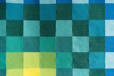 Keywords: tapestry square yellow green blue turquoise color gradation abstract background structure pattern form artists herbert baker creativity geometry composition chromatic