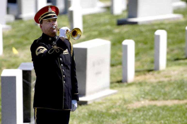 Keywords: Taps Caspar Weinberger.jpg A bugler plays Taps during the funeral of Caspar W Weinberger 15th secretary of defense at his final resting place in Arlington National Cemetery Arlington Va 2006-04-04 U S Navy Petty Officer 1st Class Chad J McNeeley http //www defenselink mil/home/photoessays/2006-04/p20060401a7 html DefenseLink PD-USGov-Military-Navy Buglers Taps bugle call Blowing Funeral of Caspar Weinberger Funerals of military people in the United States |