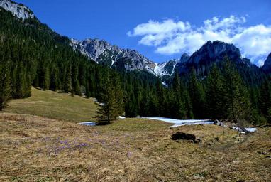 Keywords: tatry kościeliska valley winter spring tourism western tatras landscape nature rocks view mountains