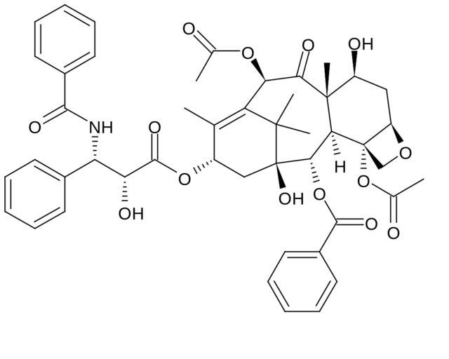 | Keywords: Taxol structure.svg Structural diagram of Paclitaxel Taxol SVG format to supersede existing PNG image Created by R Terrett in ACDChemSketch 10 0 Stereochemistry obtained from FDA document 'ABRAXANE for Injectable Suspension paclitaxel protein-bound particles for injectable suspension albumin-bound '<ref name http //www fda gov/cder/foi/label/2005/021660lbl pdf >http //www fda gov/cder/foi/label/2005/021660lbl pdf http //www fda gov/cder/foi/label/2005/021660lbl pdf</ref> It is stereochemically identical to the image it supersedes References <references/> Transferred from http //en wikipedia org en wikipedia; transferred to Commons by User Fvasconcellos using http //tools wikimedia de/~magnus/commonshelper php CommonsHelper 2006-11-24 Original uploader was Snarfevs at http //en wikipedia org en wikipedia Released into the public domain by the author en wikipedia Snarfevs original upload log page en wikipedia Taxol svg 2006-11-24 04 30 Snarfevs 500×400× 57054 bytes <nowiki>Structural diagram of Paclitaxel Taxol SVG format to supersede existing PNG image Created by R Terrett in ACDChemSketch 10 0 </nowiki> 2006-11-24 04 27 Snarfevs 500×500× 58923 bytes <nowiki>Structural diagram of Paclitaxel Taxol SVG format to supersede existing PNG image Created by R Terrett in ACDChemSketch 10 0 </nowiki> 2006-11-24 04 21 Snarfevs 744×1052× 56650 bytes <nowiki>Structural diagram of Paclitaxel Taxol SVG format to supersede existing PNG image Created by R Terrett in ACDChemSketch 10 0 </nowiki> 2006-11-24 04 18 Snarfevs 468×433× 66405 bytes <nowiki>Structural diagram of Paclitaxel Taxol SVG format to supersede existing PNG image Created by R Terrett in ACDChemSketch 10 0 </nowiki> Paclitaxel |