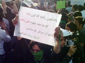 Keywords: Tazahorat sabz (10).JPG Protest demonstration against election results 7th Tir thru Karimkhan to Vali Asr Sq and beyond Tehran Sign reads Theyve forgotten that the invincible Shah dumped his crown and ran away myself on behalf of photographer Saba The photographer nicknamed Saba wishes to remain anonymous I have permission from photoghrapher to upload to WikiCommons under PD license Contact me for verification Protests relating to the Iranian presidential election 2009 from 7th Tir to Vali Asr Tehran |