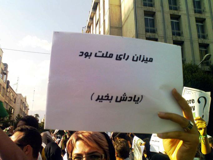 Keywords: Tazahorat sabz (30).JPG Protest demonstration against election results 7th Tir thru Karimkhan to Vali Asr Sq and beyond Tehran Sign reads The criterion used to be the people's vote oh the good old days myself on behalf of photographer Saba The photographer nicknamed Saba wishes to remain anonymous I have permission from photoghrapher to upload to WikiCommons under PD license Contact me for verification Protests relating to the Iranian presidential election 2009 from 7th Tir to Vali Asr Tehran |