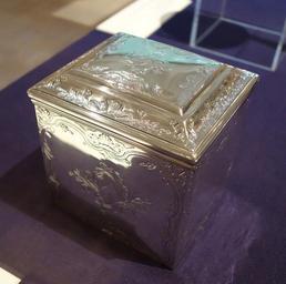 Keywords: Tea Caddy, Paul de Lamerie, British, 1743-1744, silver - Huntington Museum of Art - DSC05379.JPG en Exhibit in the Huntington Museum of Art Huntington West Virginia USA Photography was permitted in the museum without restriction This artwork is in the public domain because the artist died more than 70 years ago 2013-05-16 14 40 41 own Daderot cc-zero Silverware in the Huntington Museum of Art Uploaded with UploadWizard Paul de Lamerie Tea caddies |