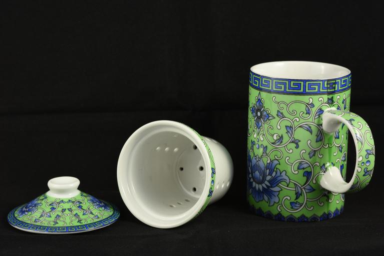 Keywords: tea set mug oriental cup tea cup white green porcelain loose leaf steeping blue lid stock