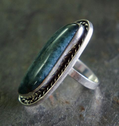 Keywords: teal jasper brown long big huge silver metal jewelry jewel stone gem gemstone cabochon cab ring setting sterling antique