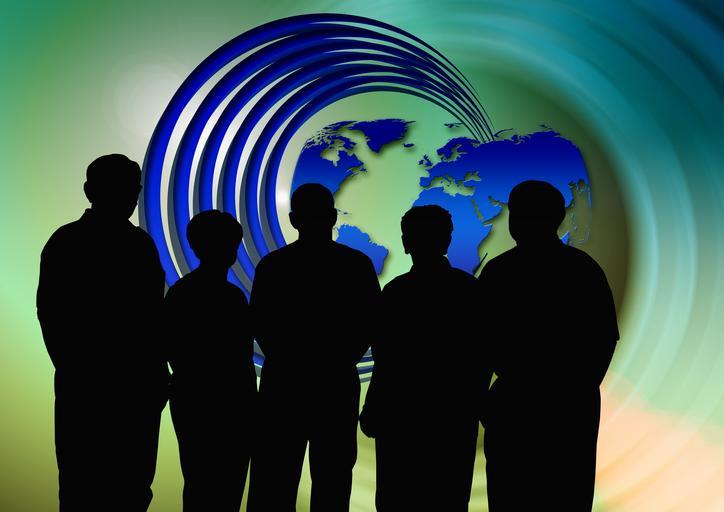 Keywords: teamwork team cooperate personal group silhouettes man woman globe world earth koorparativ human group of people together group work community cooperation business