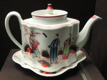 Keywords: Teapot and stand, after a silver shape, c. 1795-1805, New Hall, Shelton, Staffordshire, hybrid hard-paste porcelain, overglaze enamels - Gardiner Museum, Toronto - DSC00770.JPG Exhibit in the Gardiner Museum Toronto Ontario Canada This artwork is in the public domain because the artist died more than 70 years ago Photography was permitted in the museum without restriction Daderot 2012-10-16 15 14 55 Daderot cc0 cc0 New Hall porcelain in the Gardiner Museum |