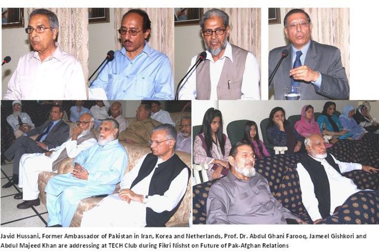 | Keywords: TECH lub Lahore Fikri Nishst with Former Ambassador of Pakistan Javid Husain on Future of Pak-Afghan Relations.jpg en Non-Military solution is the practicable resolve of Afghan problem Javid Husain Successful achievement of objectives of negotiations for peaceful solution to the Afghanistan problem will be ensured if the negotiations are owned and lead by all the groups of Afghanistan These comments were expressed by Mr Javid Husain Former Ambassador of Pakistan during a seminar at TECH Club Lahore on the topic of Future of Pak-Afghan Relations Non military solution is the practicable solution of Afghan problem he added Mr Javid said Pakistan could only ensure national sovereignty by adopting the policy of self-reliance and strong internal governance He further expressed that Pakistan is effected by any development in Afghanistan due to the presence of Pushtoons on both sides of the border Drone Attacks have negatively effected the economy and society of Pakistan the Ambassador pinpointed Prof Dr Abdul Ghani Farooq also addressed on the occasion on the topic of Mukaafat-e-Amal Abdul Majeed Khan Convener TECH Club welcomed the guest speakers Famous poet Jameel Gishkori read his poem on the present circumstances of Pakistan In the end Former President of TECH Society Munawar Zaheer thanked the speakers and invitees for the participation in this thought provoking session Qayyum Nizami Political Leader Writer and Analyst was also present in the programme own Nadeemakram 2011-04-17 Cc-zero Photomontages of people |