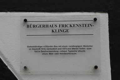 | View Original: | Tecklenburg Buergerhaus Frickenstein Klinge 03.jpg (5472x3648) | |||