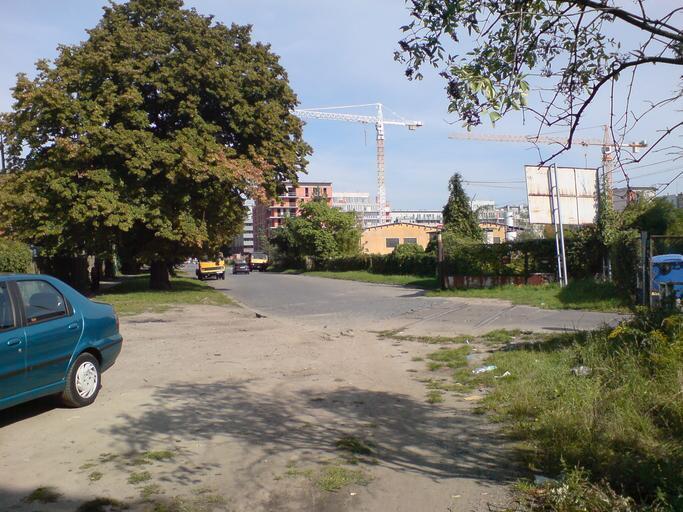 | Keywords: Teczowa.zach.koniec.jpg pl zachodni kraniec ul Tęczowej we Wrocławiu; widok w kierunku wschodnim<br>na pierwszym planie po prawej wjazd na teren jednej ze znajdujących się tu hurtowni na drugim planie budowa nowego osiedla przy Tęczowej 82-84 own Julo 1 9 2008 Julo Tęczowa Street Wrocław |