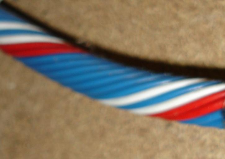 Keywords: Telephone cable2.JPG en Telephone cable The colours show how it must be installed left to the telephone exchange right to the subscriber Own Handige Harrie 2009-05-07 PD Telecommunication cables