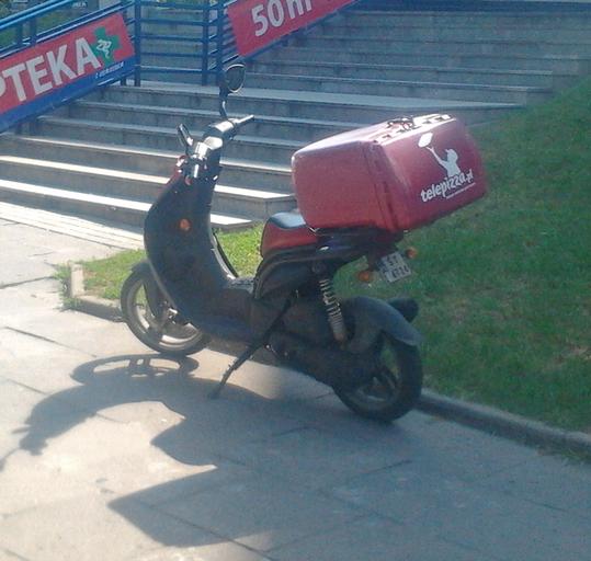 Keywords: Telepizza scooter, Warsaw .jpg A Telepizza scooter Warsaw Poland own 2016-06 User Brandmeister Telepizza Pizza delivery vehicles in Poland Scooters in Poland