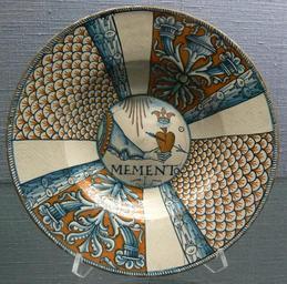 | Keywords: Teller Memento KGM K1757.jpg Teller tondino radial geteilt in der Mitte ein Arm mit einem von Amors Liebespfeil durchbohrten Herzen; Anfang 16 Jh <br />Kunstgewerbemuseum Berlin Inv Nr K 1757 own 2009 User FA2010 Ceramics in Kunstgewerbemuseum Berlin Hearts in art Arrows in art Maiolica in Germany Ceramic plates Italian maiolica 16th-century pottery in Italy |