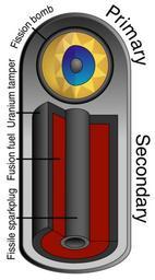 | Keywords: Teller-Ulam device 3D.svg Assessments 1 Teller-Ulam device Highly-schematic representation of the main components of a Teller-Ulam design hydrogen bomb SVG version of Image Teller-Ulam_device_3D png only difference is that this one doesn't have the radiation channel marked as its existence as such seems to be uncertain See also Image Teller-Ulam device png and Image Teller-Ulam device firing sequence png Created by User Fastfission in Adobe Illustrator Fastfission If you want to credit someone credit Wikimedia Commons Otherwise don't credit anyone that's fine by me --Fastfission 14 53 14 April 2008 UTC derivative works Ð¢ÐµÑ Ð¼Ð¾Ð½ÑƒÐºÐ»ÐµÐ°Ñ Ð½Ð° бомба PNG Teller-Ulam device 3D zh-hans png Teller-Ulam device 3D zh-hant png Teller-Ulam design Cross sections of nuclear weapons 3D cross sections |