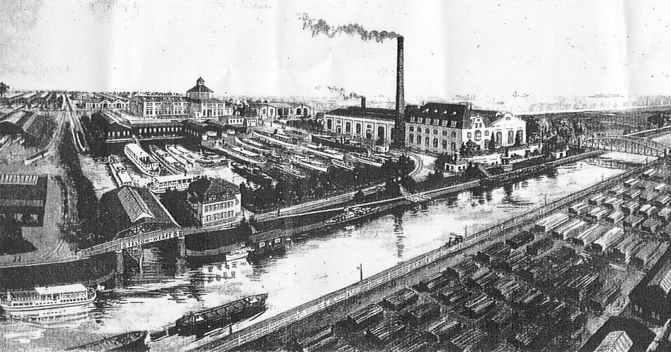 | Keywords: Teltow-Werft 1 Teltowkanal.JPG Bildmontage der ehemaligen Teltow-Werft am Teltowkanal Die Werft ging aus dem 1906 beim Kanalbau angelegten Bauhof mit dem noch vorhandenen Bauhafen hervor in dem in der Treidelzeit des Kanals die Treidellokomotiven gewartet wurden Um die Lokomotiven von der Kanal-Südseite auf die Nordseite zu führen wurde die Teltow-Werft-Brücke im Bild rechts angelegt Diese Brücke am Kilometer 11 40 wurde auch von Fußgängern und Radfahrern genutzt In den letzten Tagen des Zweiten Weltkrieges wurde sie wie nahezu alle Kanalbrücken und die Betriebseinrichtungen der Treidelbahn zerstört In der Zeit der deutschen Teilung wurde wenige Meter weiter westlich der früheren Brücke eine Behelfsbrücke für den ehemaligen Kolonnenweg der Grenztruppen der DDR gebaut die Anfang der 1990er-Jahre abgerissen wurde Seit 2002 gibt es eine Interessenvertretung zum Wiederaufbau der Teltow-Werft-Brücke zur besseren Vernetzung des Umlandes Zudem bestand hier eine Treidelbrücke über der Einfahrt zum Bauhafen im Bild links Im Westen grenzt die Brandenburger Gemeinde Kleinmachnow an das Berliner Werftgelände Hier entstand 1997 das angrenzende Wohnstift Augustinum Kleinmachnow Die Werft mit dem Bauhafen und verschiedenen denkmalgeschützten Gebäuden unter anderem ein zweigeschossiges Direktorenhaus im Landhausstil und das östlich angrenzende ehemalige Kraftwerk Schönow gehören zu Berlin-Zehlendorf Former Teltow-Werft shipyard and maintenance yard for the tow-locomotives at the Teltowkanal canal In the west borders Kleinmachnow Brandenburg In 1997 there was built the senior residence Augustinum Kleinmachnow The shipyard with some listed buildings and the former port belong to Berlin-Zehlendorf Both bridges in the picture are former tow-bridges The right one the former Teltow-Werft-Bridge was also used by pedestrians unknown im Dezember 2009 überreicht von Herrn Seifert ehemaliger leitender Mitarbeiter der Teltow-Werft Author PD-old Teltow-Werft Bridges over the Teltowkanal in Berlin Iron truss railway bridges in Berlin Kraftwerk Schönow Iron truss beam railway bridges in Germany |