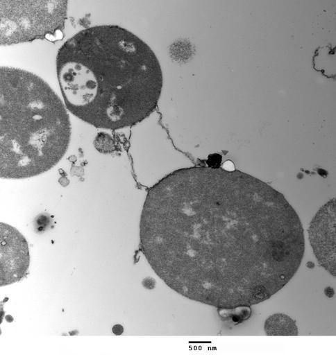 | Keywords: TEM of L-form bacteria-Mark Leaver Newcastle University.tif en Transmission electron micrograph of L-form cell wall deficient bacteria derived from Bacillus subtilis own The Red Lexicon 2007-11-08 This woek is not already published Transmission electron microscopic images Bacillus subtilis |