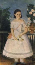 | Keywords: Temerina A. P. (Pavel Kolendas).jpg Artwork Pavel Kolendas 1820- / Павел Колендас ru Теме ина Александ а Пет овна 5 лет 1844 Холст масло 113 66 Я ославские по т еты XVIII-XIX веков набо отк ыток Пе еславль-Залесский музей Инв 1020 1844 oil Пе еславль-Залесский музей 1020 http //www rulex ru/rpg/persons/202/202669 htm Other versions Russian museum photo Institution Pereslavl-Zalessky museum-preserve PD-Art DEFAULTSORT 1844; Alexandra Petrovna Temerina Pavel Kolendas 1840s portraits of Russia female 1844 portrait paintings 19th-century oil portraits of girls at full length 19th-century portrait paintings in Russia Balustrades in portrait paintings Portrait paintings of girls from Russia Females with white dresses in art Portrait paintings of females with flowers Portrait paintings of standing girls Portrait paintings in gardens 1840s dresses |