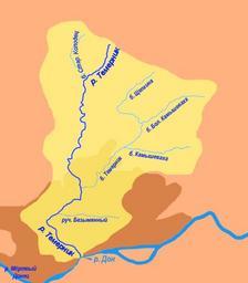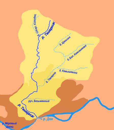 | Keywords: Temernik basin.png en Temernik River basin ru Схема бассейна еки Теме ник Жёлтым цветом выделен бассейн еки тёмно-жёлтым часть бассейна занятая го одской заст ойкой Тёмно-ко ичневым выделена те ито ия го одской заст ойки вне бассейна еки own Гайдук 2010-10-18 Temernik River |
