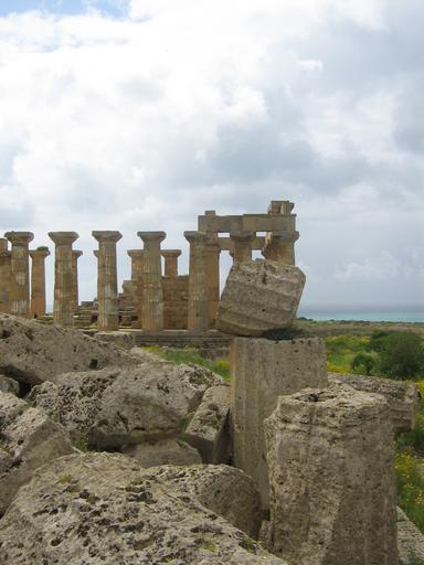 Keywords: temple greek ruin gloomy mood cloudiness clouds threat end setting sicily selinunte
