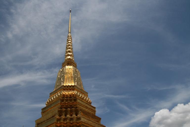 Keywords: temple spire clouds gold dome religion decorative architecture asian historic culture thailand