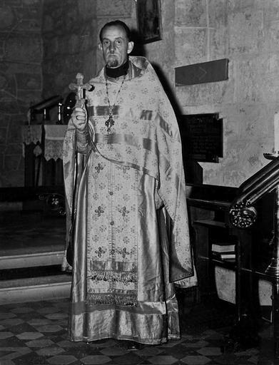 Keywords: Teodorowycz, Ananij at St John the Baptist Church, Canberra in 1949.jpg en Ukrainian Orthodox priest Father Ananij Teodorowych conducting services at St John the Baptist church in Canberra uk о Ананій Теодо ович у Канбе і 1949 оку private collection author February - March 1949 PD-Australia Ukrainian Orthodox Church in Australia Intercession of the Holy Virgin Ukrainian Orthodox Church Sydney