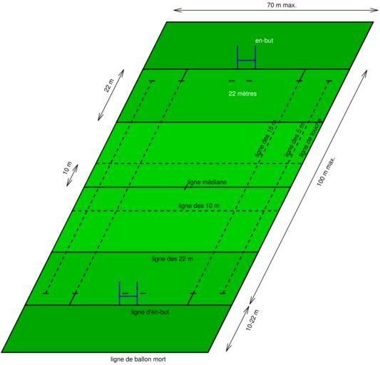 Keywords: Terrain de rugby à XV.svg Terrain de rugby à XV avec légendes françaises d'après les spécifications « Règle 1 le terrain » de la Fédération française l'échelle est approximativement reproduite sauf pour les tirets de 1 m et 50 m qui sont nettement plus longs sur le dessin pour des raisons de lisibilité Rugby union pitch with French legends after specifications in Rule 1 the field by the French Federation approximate scaling is respected except for 50 cm and 1 m dashes that are much longer on the sketch Own 2007-09-25 Lachaume Rugby union field diagrams SVG sport field diagrams |