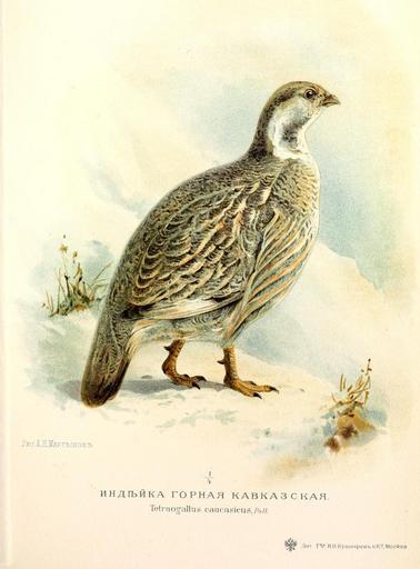 | Keywords: Tetraogallus caucasicus.jpg ru Кавказский ула ензби А Охотничьи и п омысловыя птицы Ев опейской России и Кавказа 2 тома и атлас типо-литог афия Т-ва И Кушне ев и Ко 1900-1902 1902 Menzbir M A Okhotnichi i promyslovyia ptitsy evropeskoi Rossii i Kavkaza Volume t 3 http //www archive org/stream/okhotnichiipromy03menz page/n355/mode/2up Martinov A N PD-Art Uploaded with UploadWizard Martinov A N Tetraogallus caucasicus | ||||