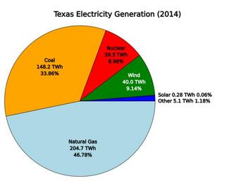 Keywords: Texas Electricity Source.svg translate yes en Sources of electricity generated in Texas 2014 US EIA Data from the US Energy Information Administration website http //www eia gov/electricity/state/texas/index cfm 2016-07-25 own Delphi234 other versions cc-zero Electric power generation Energy in Texas |