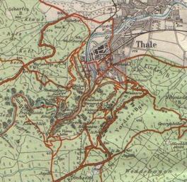 Keywords: Thale Karte 1912.JPG Karte von Thale mit Hexentanzplatz im Süden Maßstab 1 50 000 1912 de Thale 15 07 26 Apr 2004 Steffen M Thale PD-Art