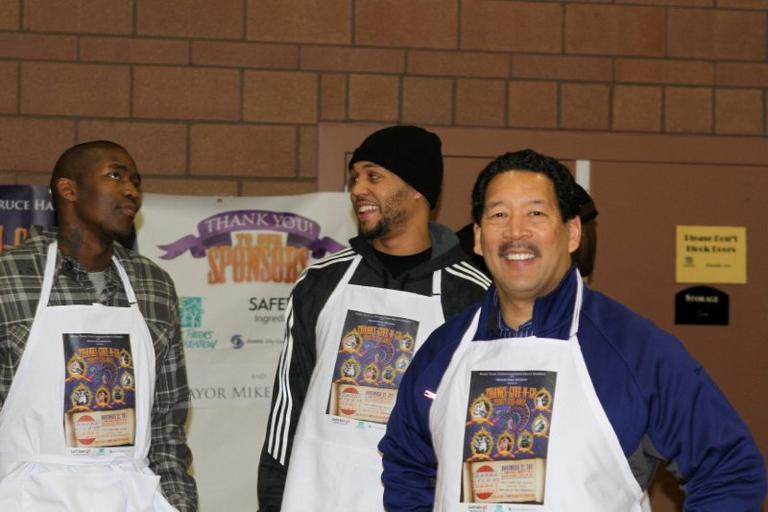 | Keywords: 2011 people indoor Councilmember Bruce Harrell joined local NBA players Jamal Crawford and Brandon Roy for this year’s Thanks-Give-N-Go turkey giveaway, where 2,000 thanksgiving dinners were given to families enrolled in Seattle Public Schools’ free and reduced lunch program. www.seattle.gov/council/harrell/ Photo credit: Kim Grinolds Councilmember Bruce Harrell joined local NBA players Jamal Crawford and Brandon Roy for this year’s Thanks-Give-N-Go turkey giveaway, where 2,000 thanksgiving dinners were given to families enrolled in Seattle Public Schools’ free and reduced lunch program. www.seattle.gov/council/harrell/ Photo credit: Kim Grinolds |