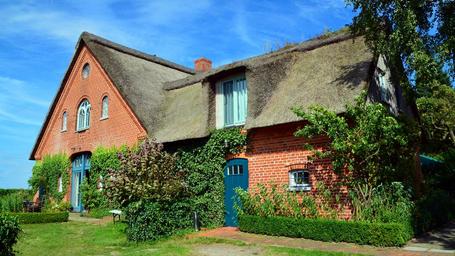 Keywords: thatched cottage rural reed sky home building blue beautiful thatched roof clouds