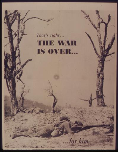 | Keywords: THAT'S RIGHT... THE WAR IS OVER... FOR HIM - NARA - 515556.jpg Scope and content General notes This picture was taken on May 14 1944 Mother's Day Here is part of a letter Bill Allen wrote to his wife on May 15 1944 I came across this doughboy I had seen get it just about a half an hour before There he was his rifle in his hand the stock of it had been shattered by the same shell that got him He was not banged up much just around the neck but it was enough I looked at him for full two minutes before I could make a picture of him You know the thought that went through my mind It was May 14 Mother ™s Day and I got to thinking What a hell of a Mother ™s Day gift for his mother A couple of shells woke we me and reminded me that there was still a war going on so I made a couple of pictures of him and took off for the highway 515556 Local identifier 44-PA-1877 Office for Emergency Management Office of War Information Domestic Operations Branch Bureau of Special Services 03/09/1943 - 09/15/1945 Photograph by William C Allen AP War Correspondent Near the town of Minturno Italy Still Picture Records Section Special Media Archives Services Division NWCS-S National Archives at College Park 8601 Adelphi Road College Park MD 20740-6001 1941 - 1945 Mother's Day May 14 1944 Record group Record Group 44 Records of the Office of Government Reports 1932 - 1947 Record group ARC 373 World War II Posters compiled 1942 - 1945 Series ARC 513498 File unit File unit ARC Variant control numbers NAIL Control Number NWDNS-44-PA-1877 Other versions <gallery> File THAT'S_RIGHT _THE_WAR_IS_OVER _FOR_HIM_-_NARA_-_515556 tif tif File THAT'S_RIGHT _THE_WAR_IS_OVER _FOR_HIM_-_NARA_-_515556 jpg jpg </gallery> NARA-cooperation PD-USGov World War II posters from the United States |