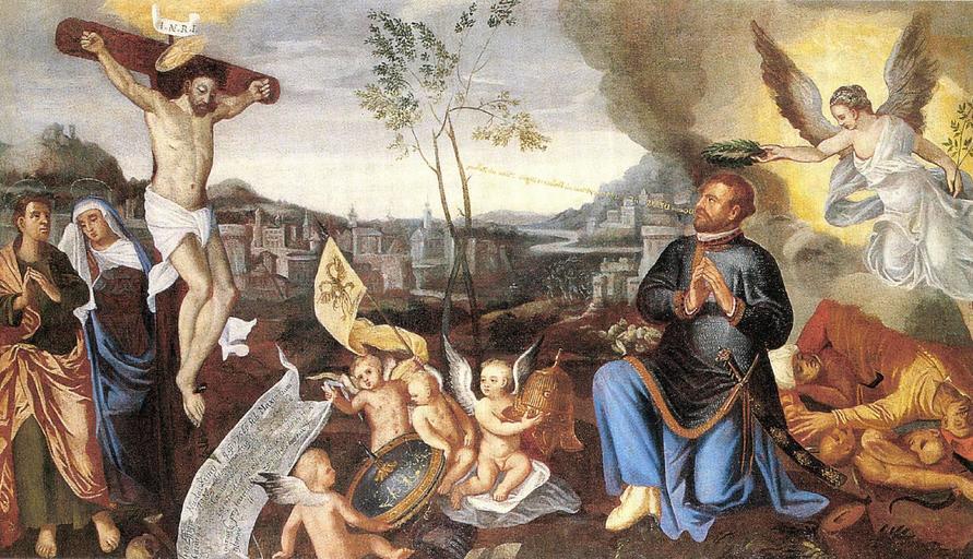 | Keywords: The apotheosis of Miklós Zrínyi.jpg Artwork Unknown end other date century 16 Oil on canvas Size cm 152 87 5 Institution Hungarian National Gallery object history exhibition history credit line accession number 75 3 M Mikó Árpád Sinkó Katalin szerk Történelem-Kép Szemelvények múlt és művészet kapcsolatáról Magyarországon A Magyar Nemzeti Galéria kiadványai 2000/3 cat no VI-18 http //muzeum arcanum hu/kiadvanyok Magyar Digitális Múzeumi Könyvtár PD-old-100 Paintings by unknown painter in the Hungarian National Gallery 16th-century paintings in Hungary Nikola Šubić Zrinski 16th-century paintings not categorised by year 16th-century religious paintings in Hungary 1551-1600 paintings 16th-century oil on canvas paintings in Hungary 16th-century paintings of the Crucifixion of Christ 16th-century paintings of people 16th-century paintings of angels Apotheosis Religious paintings in the Hungarian National Gallery Paintings of Crucifixion of Christ in Hungary |
