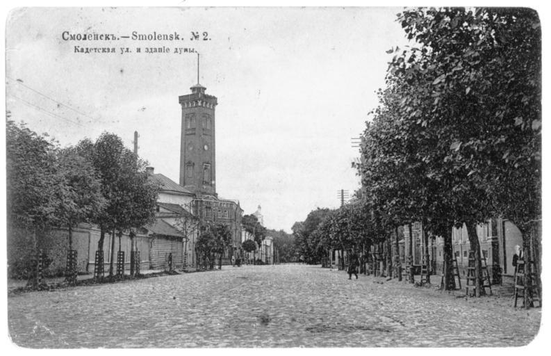 | Keywords: The Cadet street 2.jpg en Cadet Street now - Communist In the background - the building of City Council ru Улица Кадетская ныне - Коммунистическая а заднем плане - здание го одской думы О игинальная отк ытка е установлены before 1917 года PD-RusEmpire 20th-century postcards Postcards of Smolensk |
