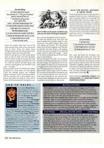 | Keywords: recipes food text seafood shellfish oysters savoury country living countryliving cooking scanned Article and recipes using fresh oysters - gigas and native British. 3 pages - 1x2+1 Article and recipes using fresh oysters - gigas and native British. 3 pages - 1x2+1 |