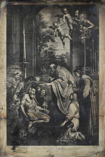Keywords: george eastman house georgeeastmanhouse photo:process=daguerreotype color:rgb_avg=5e5b53 color:rgbavg=5e5b53 geh:accession=1974:0193:0629 geh:accession=197401930629 Accession Number: 1974:0193:0629 Maker: Southworth & Hawes Title: The Communion of St. Jerome Date: ca. 1850 Medium: daguerreotype Dimensions: whole plate; 21.7 x 16.5 cm. George Eastman House Collection General information about the George Eastman House Photography Collection is available at www.eastmanhouse.org/inc/collections/photography.php. For information on obtaining reproductions go to: www.eastmanhouse.org/flickr/index.php?pid=1974:0193:0629. Accession Number: 1974:0193:0629 Maker: Southworth & Hawes Title: The Communion of St. Jerome Date: ca. 1850 Medium: daguerreotype Dimensions: whole plate; 21.7 x 16.5 cm. George Eastman House Collection General information about the George Eastman House Photography Collection is available at www.eastmanhouse.org/inc/collections/photography.php. For information on obtaining reproductions go to: www.eastmanhouse.org/flickr/index.php?pid=1974:0193:0629. |