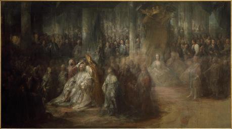 | Keywords: The Coronation of King Gustav III of Sweden. Uncompleted (Carl Gustav Pilo) - Nationalmuseum - 18007.tif Kung Gustav III information field Creator Carl Gustaf Pilo The Coronation of King Gustav III of Sweden Uncompleted The central figure in the painting is King Gustav III He is wearing his white coronation costume that seems almost to radiate light A crown is in the process of being placed on his head by the senior member of the State Council together with Archbishop Beronius To the left are the nobility above them the burghers behind the throne are the priests and on the far right the farmers The coronation scene is bathed in misty blue-grey sunlight and the painting is dominated by tones of deep green and grey-brown The bottom right-hand corner of the painting is bare The canvas is visible as are some boldly sketched lines In places the paint seems bubbly and dried up into a leathery grey-black layer In spite of this many people consider the coronation picture to be one of the greatest masterpieces of Swedish art It is the work of the then director of the Academy of Fine Arts the court painter Carl-Gustav Pilo He can be seen among the farmers on the right at the top of the painting He is the rotund gentleman offering his friend and colleague Elias Martin a pinch of snuff In the other hand he holds a silver cane Pilo grounded the canvas with a yellow-brown coating on which he sketched the figures and the various spaces To give the parts in shadow a deeper tone he filled these in with a thin layer of asphalt It is because of the asphalt that the painting today appears bubbly and viscous The painting has been exposed to the sun or to another source of heat which has caused the asphalt to blister and the paint to move At certain points the undercoating has forced its way up through the covering layers of paint The face for example had been doubled When Pilo had been working on the painting for more than ten years Gustav III was murdered at the opera and in the following years of 1793 Pilo himself died The painting had not been completed Generations of visitors have been fascinated by the coronation painting Bildens centralgestalt är kung Gustav III Här klädd i vit kröningsdräkt som nästan verkar stråla av ljus Kronan placeras just på hans huvud av äldsta riksrådet Adam Horn och ärkebiskop Beronius Det är den 29 maj 1772 och Storkyrkan i Stockholm är fylld till bredden Riksdagens fyra stånd är alla representerade Till vänster står adeln ovanför dem borgarna bakom tronen präster och längst till höger bönder Kröningsscenen är inbäddad i ett disigt gråblått solljus och djupt gröna och gråbruna färgtoner dominerar Det nedre högra hörnet av målning är bart Duken syns och på den några kraftiga skissartade linjer Färgen verkar dessutom bubblig och på flera ställen hoptorkad till en seg gråsvart beläggning Trots detta uppfattas Kröningstavlan av många som ett av svensk konsts stora mästerverk Den är målad av konstakademins dåvarande direktör hovmålaren Carl-Gustav Pilo Man ser honom bland bönderna längst upp till höger En rundlagd man som bjuder sin vän och konstnärskollega Elias Martin på snus I andra handen håller han en silverkrycka Pilo började med att ge duken en gulbrun undermålning på vilken han löst tecknade upp figurer och rumsbildning För att ge de skuggade partierna en djupare klang fyllde han i dessa med ett tunt lager asfalt Och det är på grund av asfalten som färgen idag ser bubblig och rinnig ut Målningen har exponerats för solljus eller annan värme som gjort att asfalten kokat och färgen börjat glida På vissa ställen har den underliggande färgen dessutom trängt igenom övermålningen så att till exempel ansikten blivit fördubblade Pilo hade arbetat på tavlan i nästa tio år när Gustav III sköts på Operan 1792 Året därefter 1793 dog Pilo själv Målningen var då ofullbordad Generationer av besökare har genom åren fascinerats av den header The central figure in the painting is King Gustav III He is wearing his white coronation costume that seems almost to radiate light A crown is in the process of being placed on his head by the senior member of the State Council together with Archbishop Beronius To the left are the nobility above them the burghers behind the throne are the priests and on the far right the farmers The coronation scene is bathed in misty blue-grey sunlight and the painting is dominated by tones of deep green and grey-brown The bottom right-hand corner of the painting is bare The canvas is visible as are some boldly sketched lines In places the paint seems bubbly and dried up into a leathery grey-black layer In spite of this many people consider the coronation picture to be one of the greatest masterpieces of Swedish art It is the work of the then director of the Academy of Fine Arts the court painter Carl-Gustav Pilo He can be seen among the farmers on the right at the top of the painting He is the rotund gentleman offering his friend and colleague Elias Martin a pinch of snuff In the other hand he holds a silver cane Pilo grounded the canvas with a yellow-brown coating on which he sketched the figures and the various spaces To give the parts in shadow a deeper tone he filled these in with a thin layer of asphalt It is because of the asphalt that the painting today appears bubbly and viscous The painting has been exposed to the sun or to another source of heat which has caused the asphalt to blister and the paint to move At certain points the undercoating has forced its way up through the covering layers of paint The face for example had been doubled When Pilo had been working on the painting for more than ten years Gustav III was murdered at the opera and in the following years of 1793 Pilo himself died The painting had not been completed Generations of visitors have been fascinated by the coronation painting Bildens centralgestalt är kung Gustav III Här klädd i vit kr
