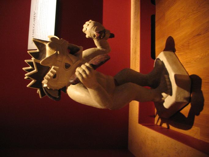 Keywords: The Decapitator Moche.jpg A reproduction of a Moche statue on display at the Army Museum in Stockholm The translation of the caption in the background is as follows THE DECAPITATOR A ferocious mythological being from the Moche culture in Peru c 500 BC In his right hand he is holding a tumi “ a ritual sacrificial knife At the top of Moche society reigned warrior-priests who presided over sacrificial ceremonies where prisoners of war were decapitated and cut up after which their blood was greedily drunk The Moche people possessed no writing system but their artwork is unparalleled in pre-Columbian America In the 8th century AD the culture disappeared without explanation Sculpture after a contemporary clay vessel from Peru The_Decapitator jpg 2009-02-20 18 31 UTC The_Decapitator jpg Peter Isotalo Old version- antigua version Digary The_Decapitator jpg Moche pottery Beheadings in art Collections of the Swedish Army Museum |